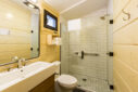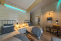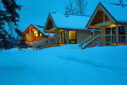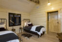 The Riverside Cabins are also constructed of square-cut, Nordic pine logs from Finland. The Riverside Cabins are more modest in size than the Lakeside counterpart and include one spacious bedroom to accommodate two twin beds, a luxury bathroom and a lake facing living room with small desk and bar/coffee area for guest use. The architecture and interior design were completed by Z Architects.